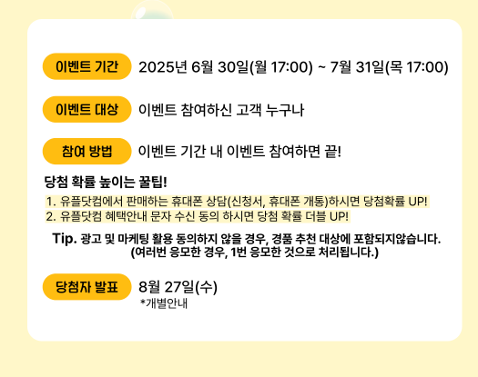 📍 참여 방법: 유플닷컴 접속 → 이벤트 클릭 → 참여 완료